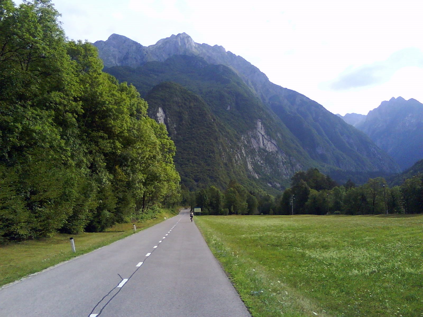 Pot do Trbiža je bila prijetna, po dolini na srečo ni bilo nasprotnegha vetra, ki bi mi zagrenil spust. Od tu naprej je pokrajina bolj žalostna, tako da nisem več slikal. Zanimivo je sicer (socialistično - sami bloki, brez hiš!) mestece Cave del Predil, z modernistično cerkvijo. Na oglasni tabli sem videl oglas za prodajo tamkajšnjega stanovanja: 62.000€!